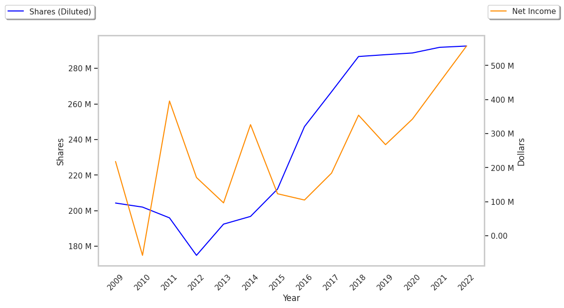| Diluted Shares (M) | 288 | 289 | 291 | 292 | 294 | 296 |