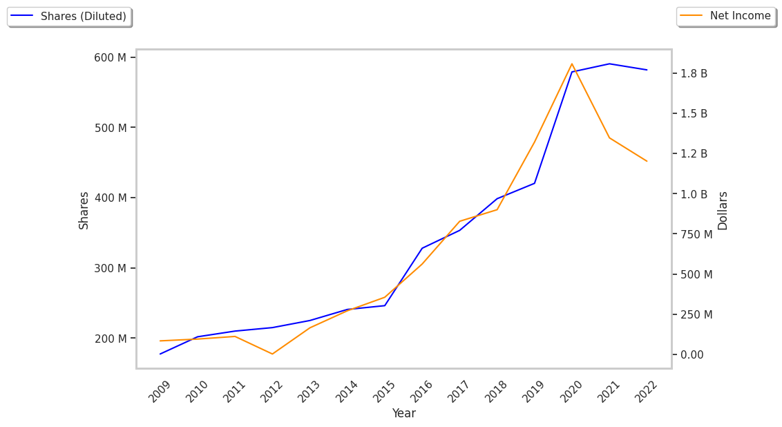 | Diluted Shares (M) | 420 | 579 | 591 | 582 | 546 | 524 |