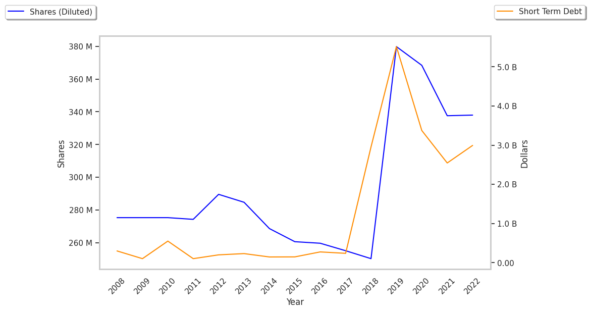 We calculate Cigna's current ratio by dividing its total current assets of $48.87 Billion by its total current liabilities of $57.98 Billion. Current assets refer to company assets that can be transferred into cash within one year, such as accounts receivable, inventory, and liquid financial instruments. Current liabilities, on the other hand, refer to those that will come due within one year. Cigna’s current liabilities are actually greater than its current assets, since its current ratio is only 0.8.